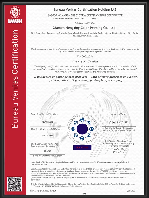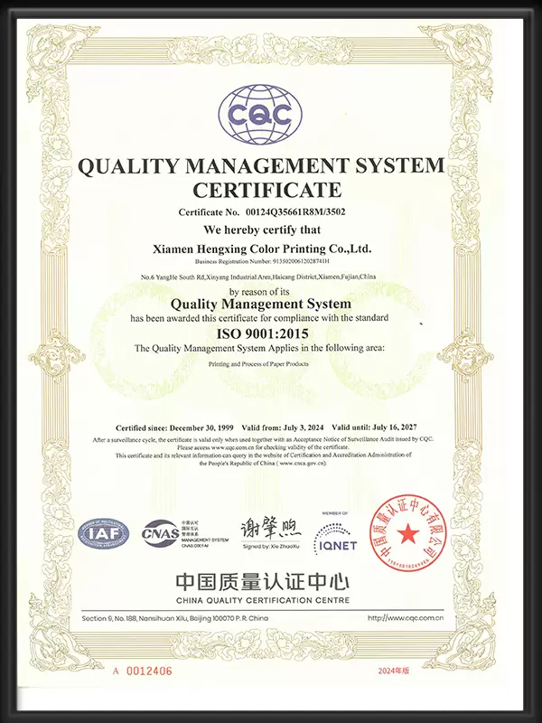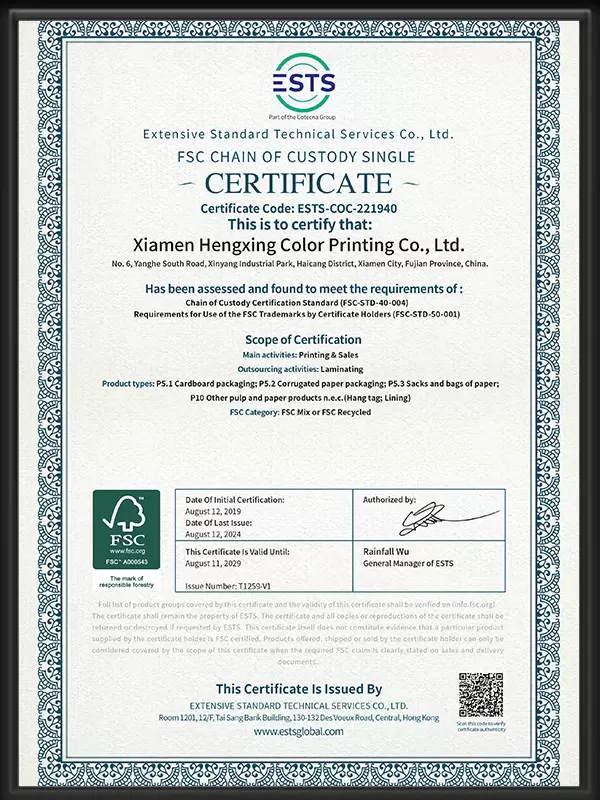 Nuestra fábrica se fundó en 1995 y se encuentra en Xiamen, Fujian, China. Contamos con las certificaciones FSC, ISO9001 y SA8000. Nos especializamos en soluciones de embalaje ecológico durante más de 30 años. Actualmente, contamos con una fábrica estándar de más de 19 000 metros cuadrados y máquinas de impresión profesionales, como Heidelberg.