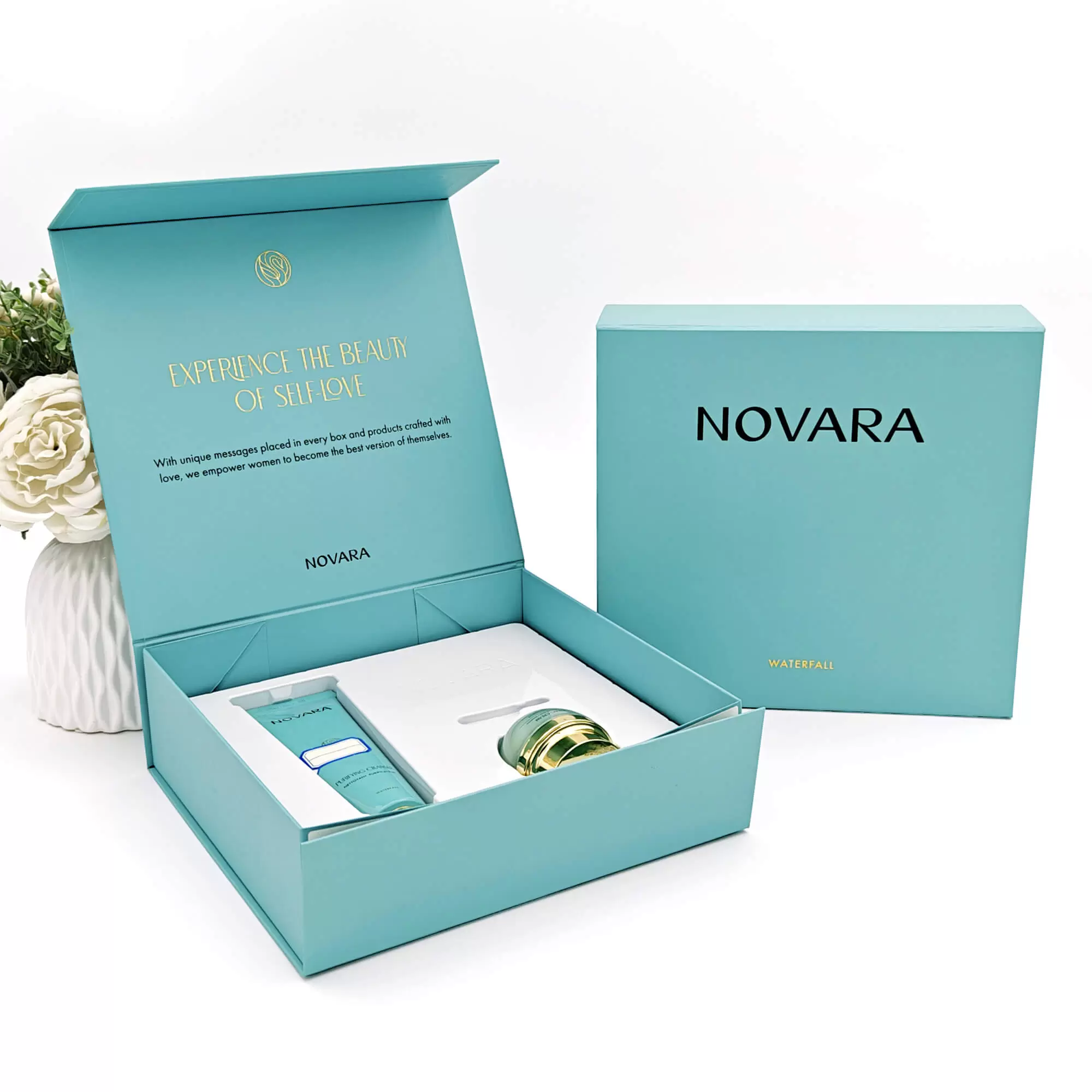 Nuestras cajas con cierre magnético se adaptan a cualquier tamaño, forma o estilo de producto. Desde pequeños joyeros hasta sets de cosméticos más grandes, la personalización garantiza un ajuste perfecto para cada producto. Las opciones incluyen: