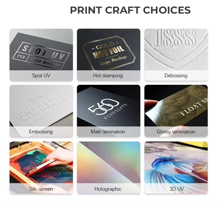 Manejo de impresión: Relieve, Laminado brillante, Laminado mate, Estampado, Recubrimiento UV, Barnizado, Estampado dorado, DESVANECIMIENTO